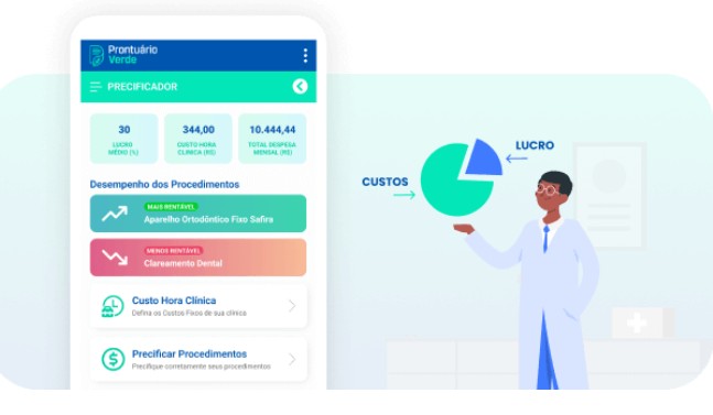 Além dessas novidades, o Prontuário Verde oferece um precificador que auxilia com exatidão todos os custos envolvidos nos procedimentos propostos aos pacientes.Ou seja, você consegue saber de forma detalhada o custo de cada tratamento realizado em sua clínica. Também pode informar seus custos, os gastos com materiais, laboratórios.